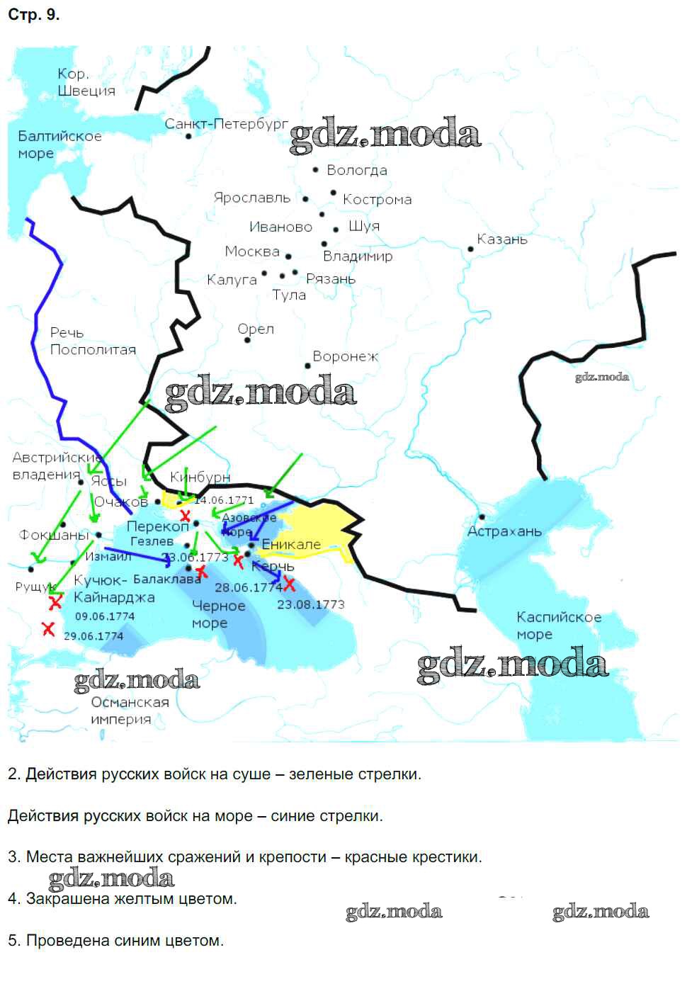 ГДЗ решение к заданию № 9 История России 8 класс контурные карты Павлова Н.В. (к уч. Торкунова А.В.) Экзамен 2019 ФГОС бесплатно на гдз.мода!