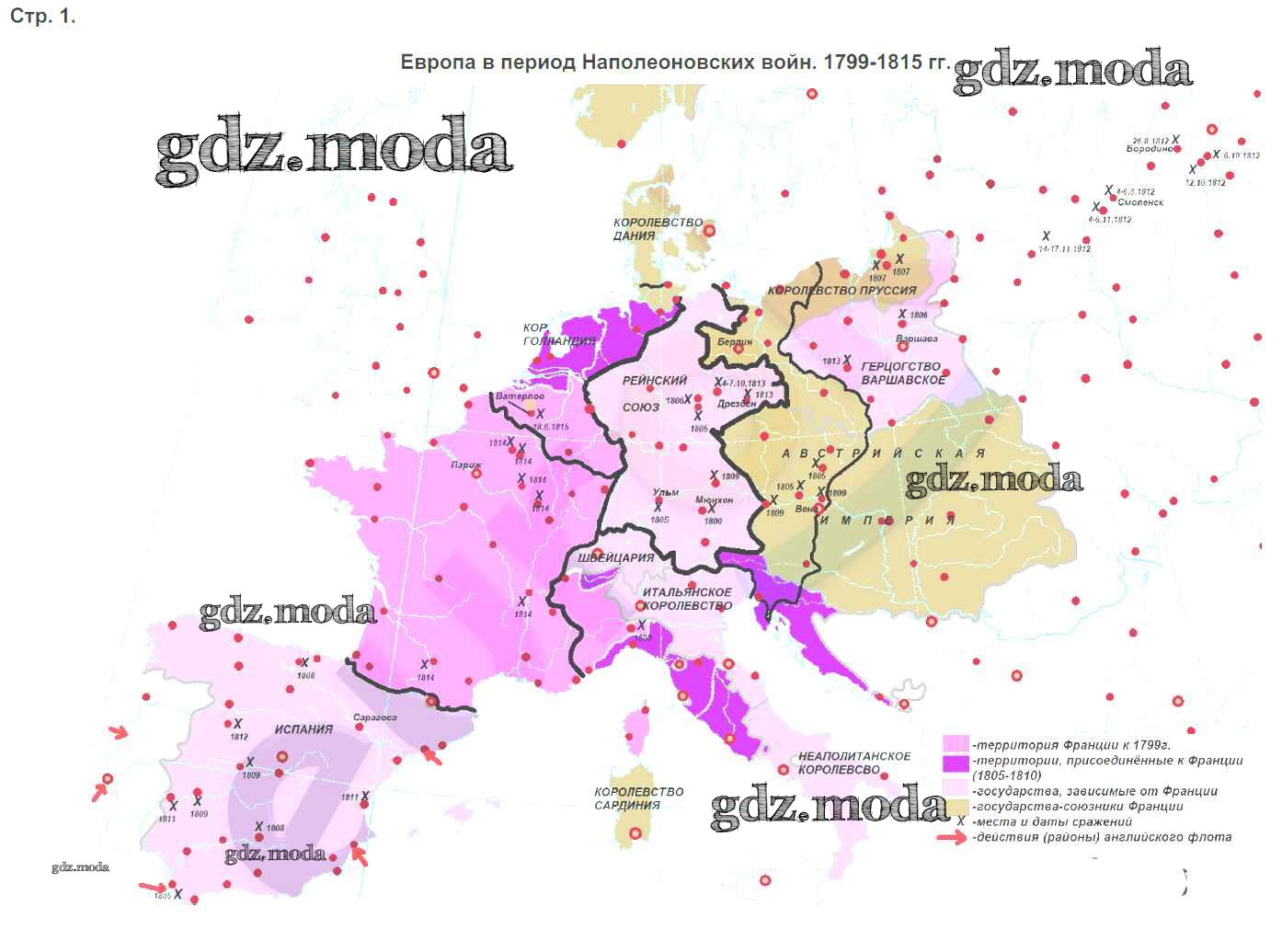 ГДЗ решение к заданию № 1 История 8 класс контурные карты Приваловский А.Н. Дрофа 2019 ФГОС бесплатно на гдз.мода!