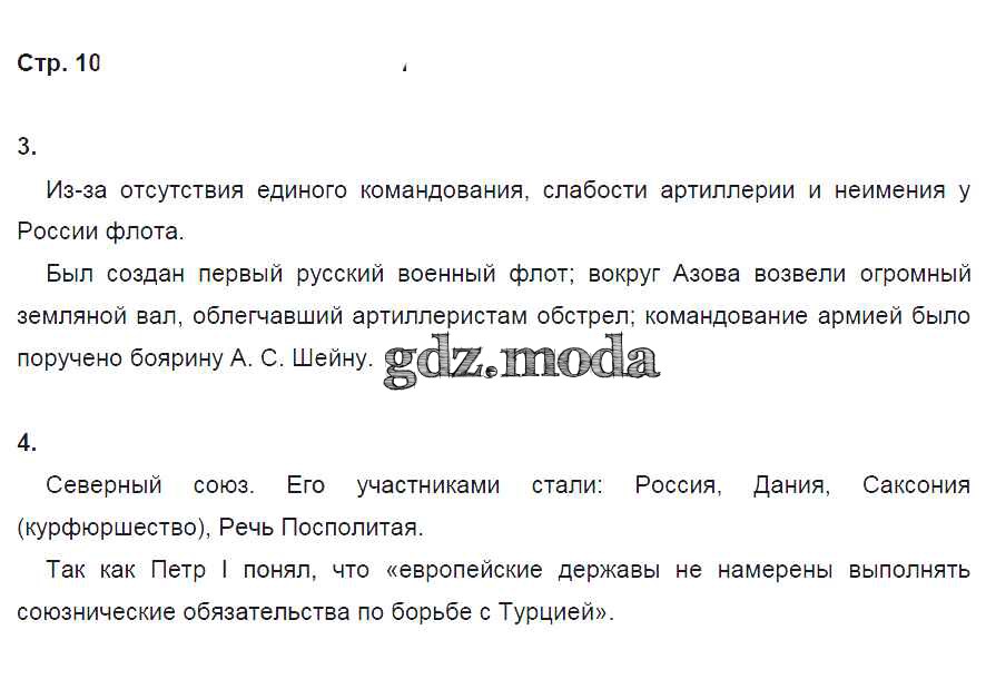 ОТВЕТ на задание № 10 Рабочая тетрадь по Истории 8 класс Артасов УМК