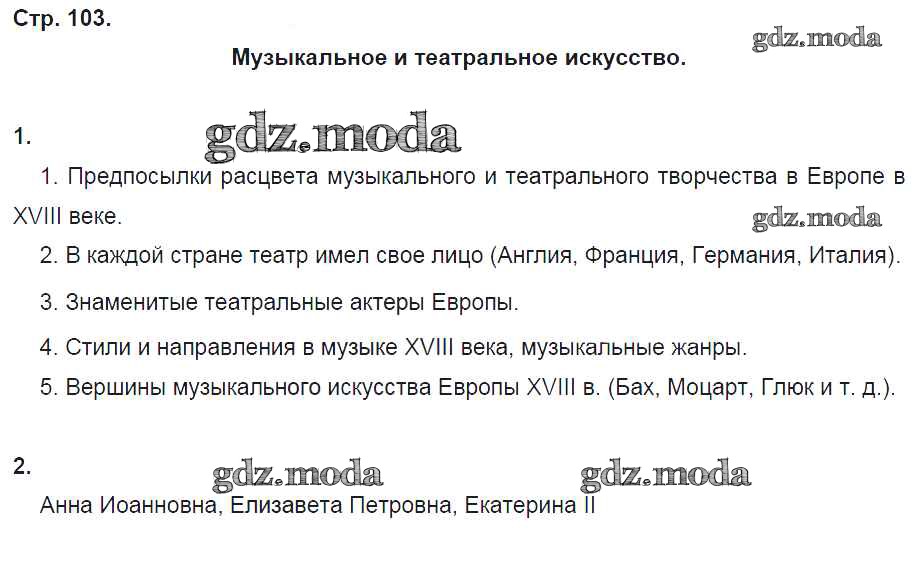 ОТВЕТ на задание № 103 Рабочая тетрадь по Истории 8 класс Артасов УМК