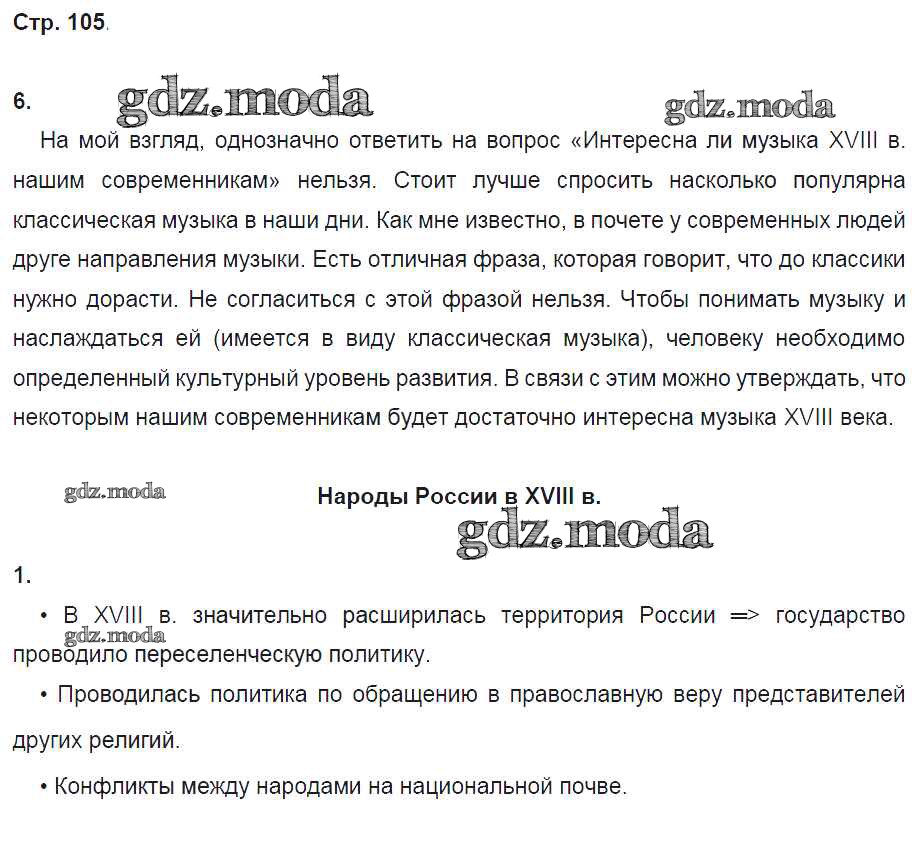 ГДЗ решение к заданию № 105 История 8 класс рабочая тетрадь Артасов И.А. Просвещение 2016 ФГОС бесплатно на гдз.мода!