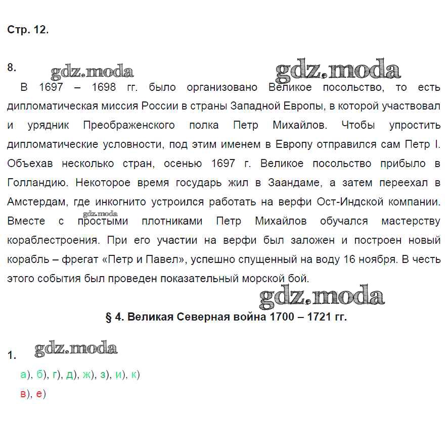 ОТВЕТ на задание № 12 Рабочая тетрадь по Истории 8 класс Артасов УМК