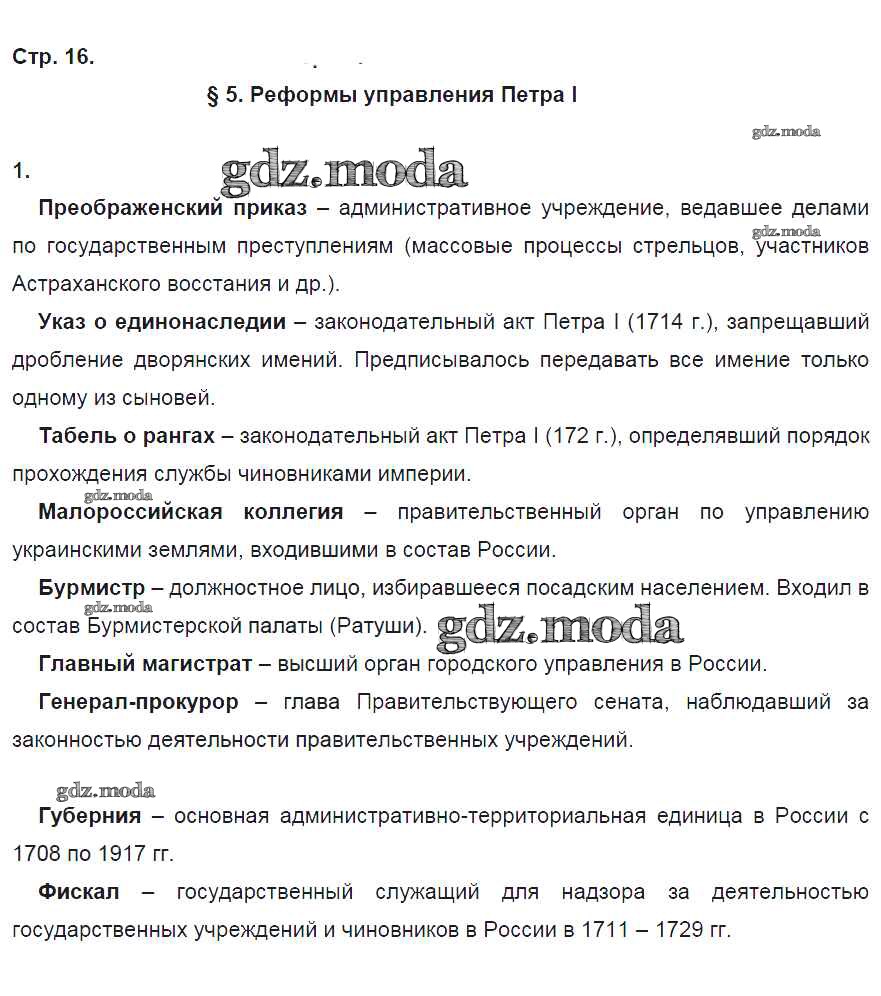 ОТВЕТ на задание № 16 Рабочая тетрадь по Истории 8 класс Артасов УМК
