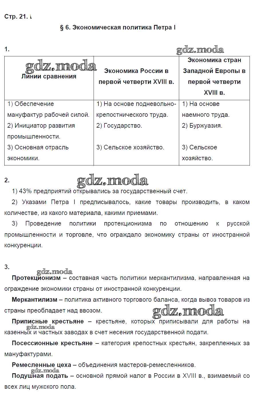 ГДЗ решение к заданию № 21 История 8 класс рабочая тетрадь Артасов И.А. Просвещение 2016 ФГОС бесплатно на гдз.мода!