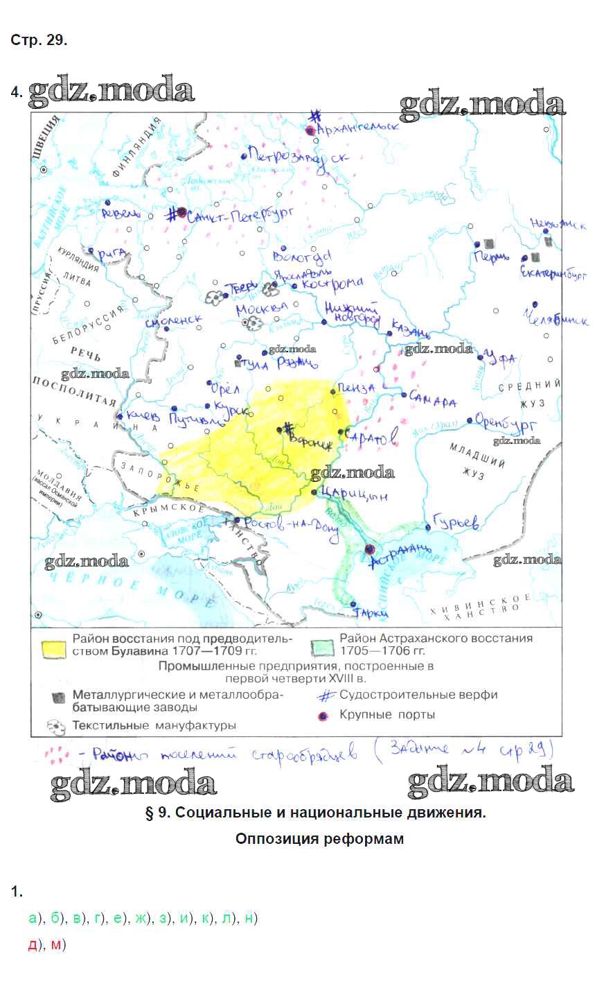 ГДЗ решение к заданию № 29 История 8 класс рабочая тетрадь Артасов И.А. Просвещение 2016 ФГОС бесплатно на гдз.мода!