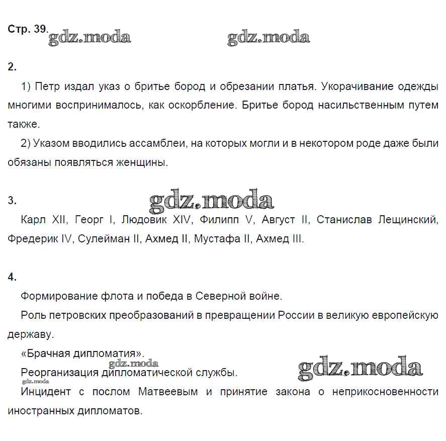 ГДЗ решение к заданию № 39 История 8 класс рабочая тетрадь Артасов И.А. Просвещение 2016 ФГОС бесплатно на гдз.мода!
