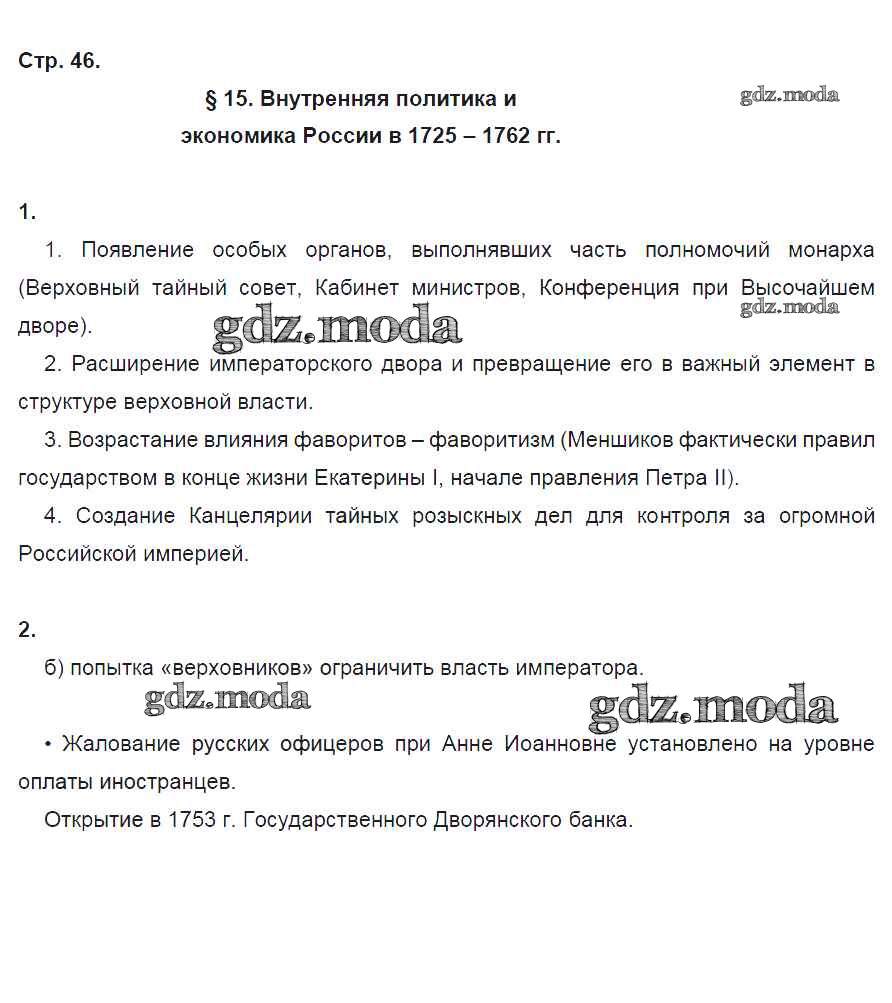 ГДЗ решение к заданию № 46 История 8 класс рабочая тетрадь Артасов И.А. Просвещение 2016 ФГОС бесплатно на гдз.мода!
