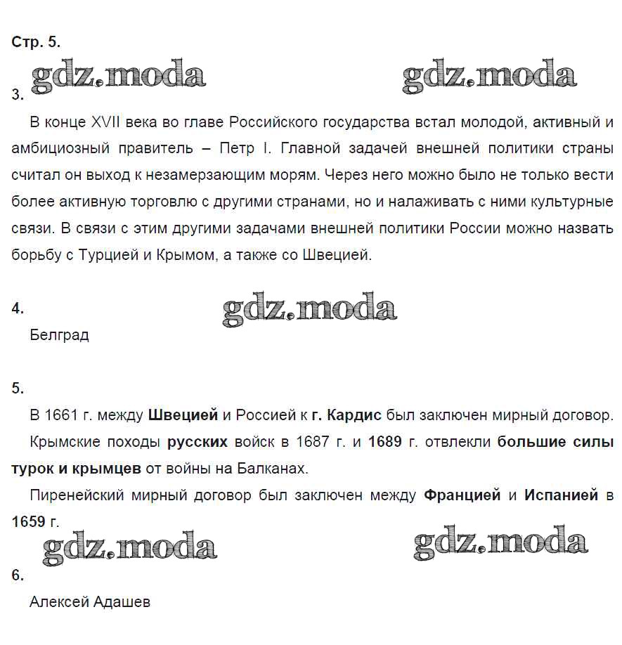 ГДЗ решение к заданию № 5 История 8 класс рабочая тетрадь Артасов И.А. Просвещение 2016 ФГОС бесплатно на гдз.мода!