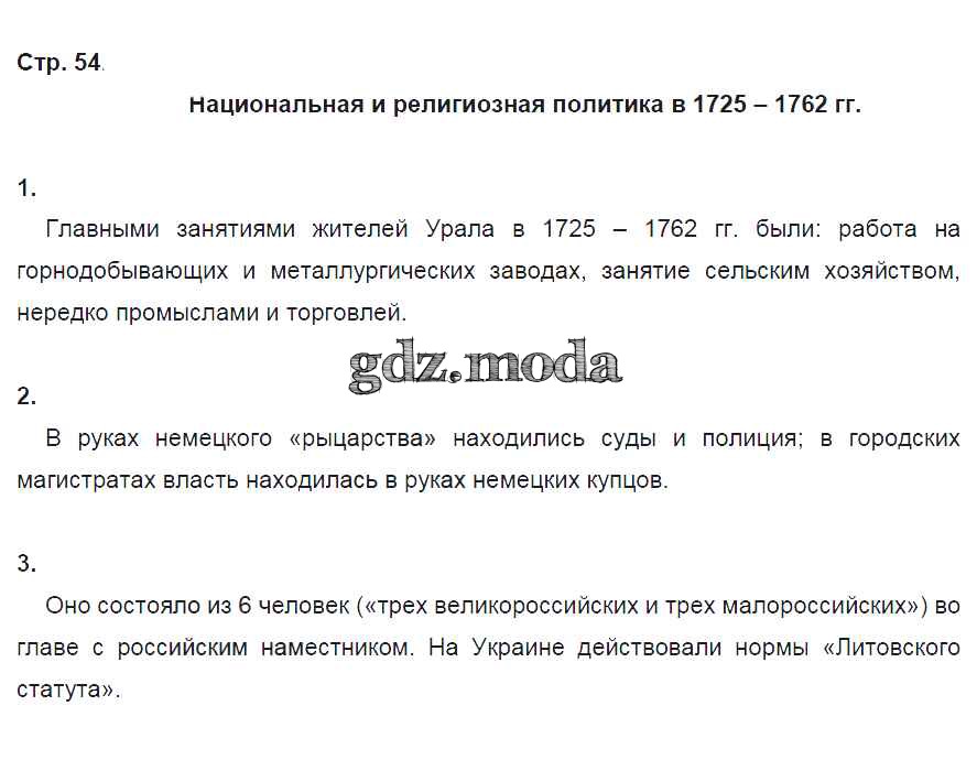 ОТВЕТ на задание № 54 Рабочая тетрадь по Истории 8 класс Артасов УМК