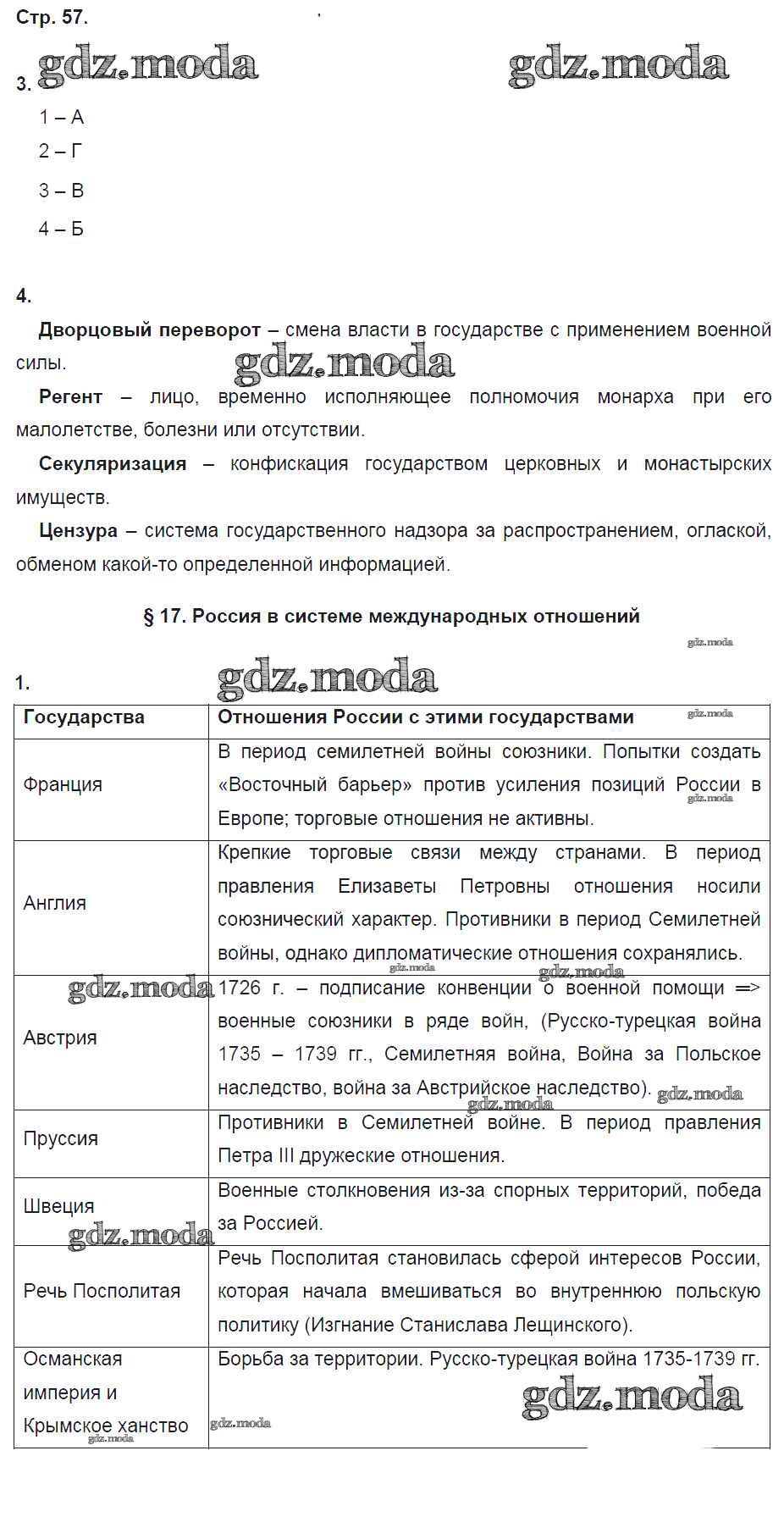 ГДЗ решение к заданию № 57 История 8 класс рабочая тетрадь Артасов И.А. Просвещение 2016 ФГОС бесплатно на гдз.мода!