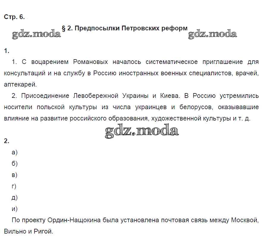 ГДЗ решение к заданию № 6 История 8 класс рабочая тетрадь Артасов И.А. Просвещение 2016 ФГОС бесплатно на гдз.мода!