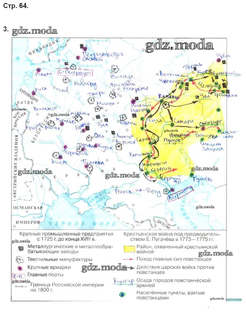 ОТВЕТ на задание № 64 Рабочая тетрадь по Истории 8 класс Артасов УМК