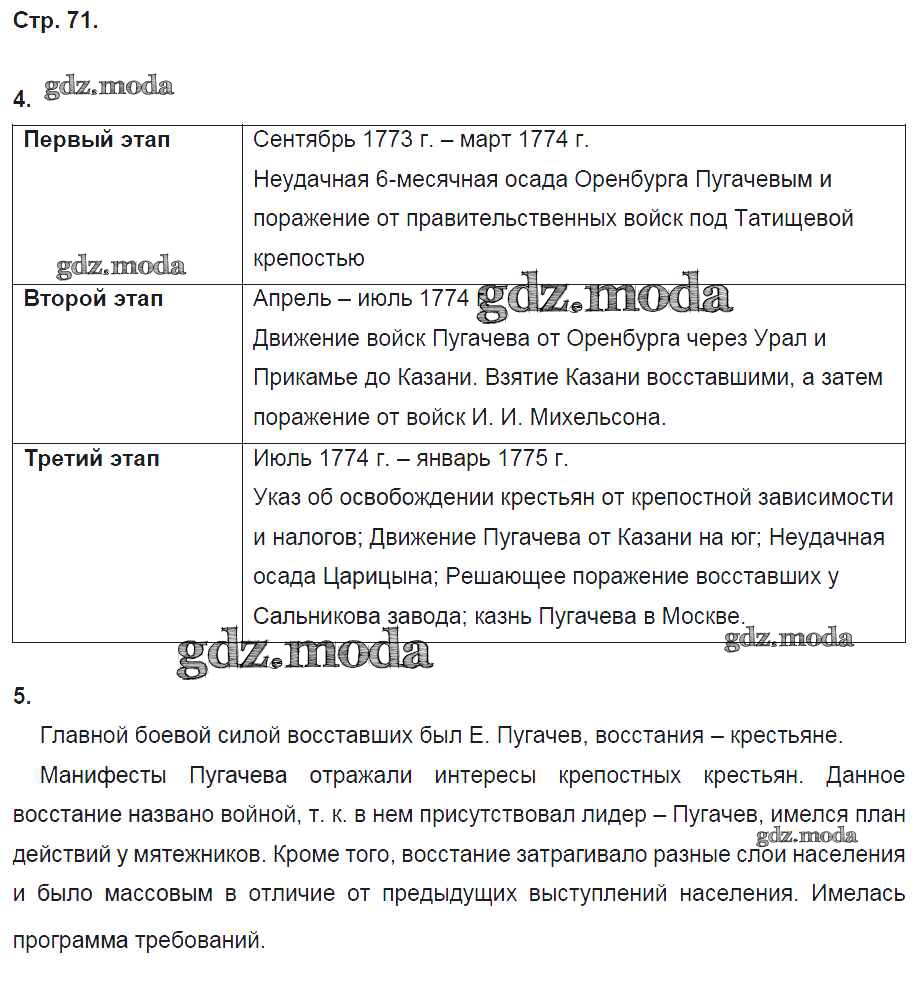 ГДЗ решение к заданию № 71 История 8 класс рабочая тетрадь Артасов И.А. Просвещение 2016 ФГОС бесплатно на гдз.мода!
