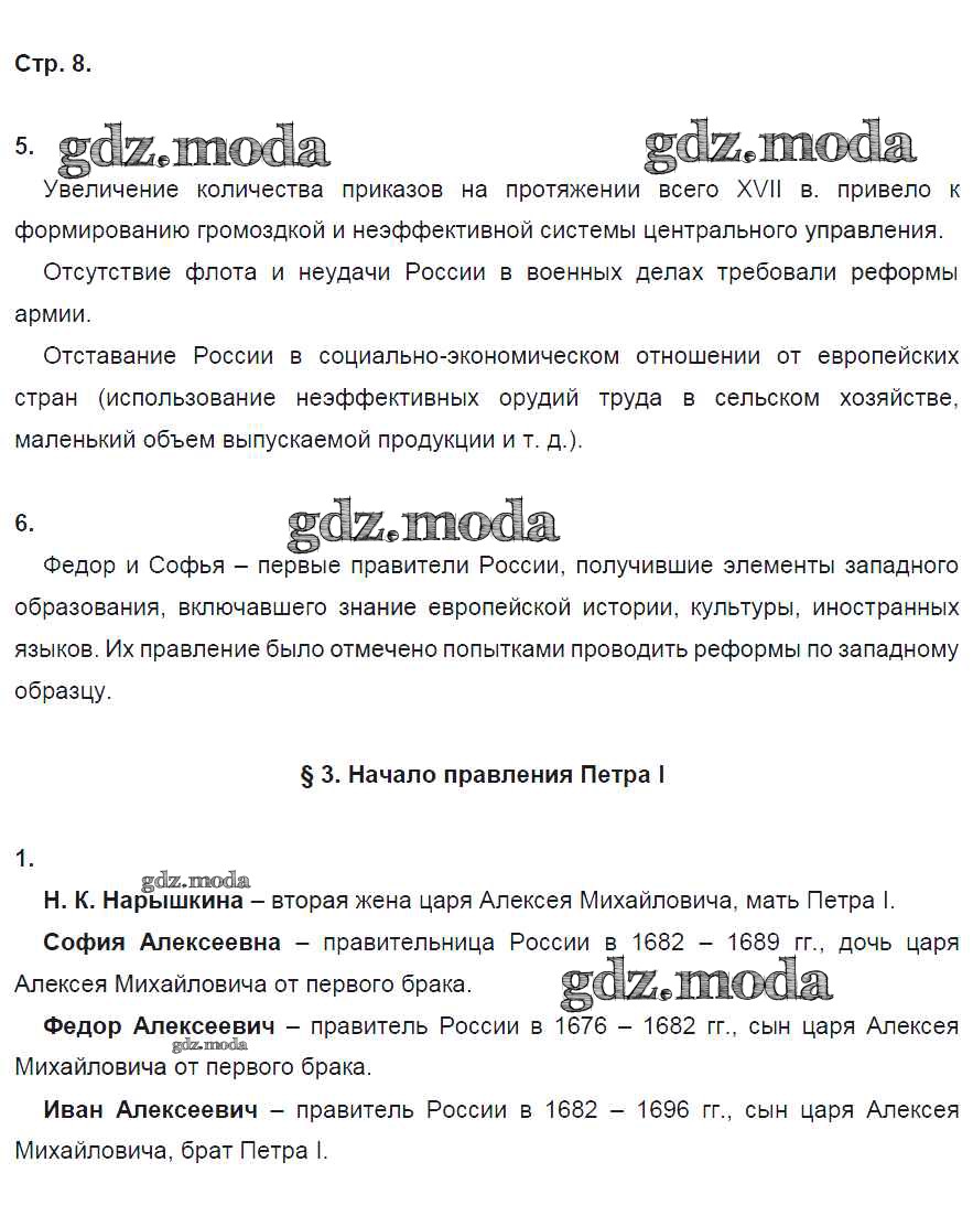 ОТВЕТ на задание № 8 Рабочая тетрадь по Истории 8 класс Артасов УМК
