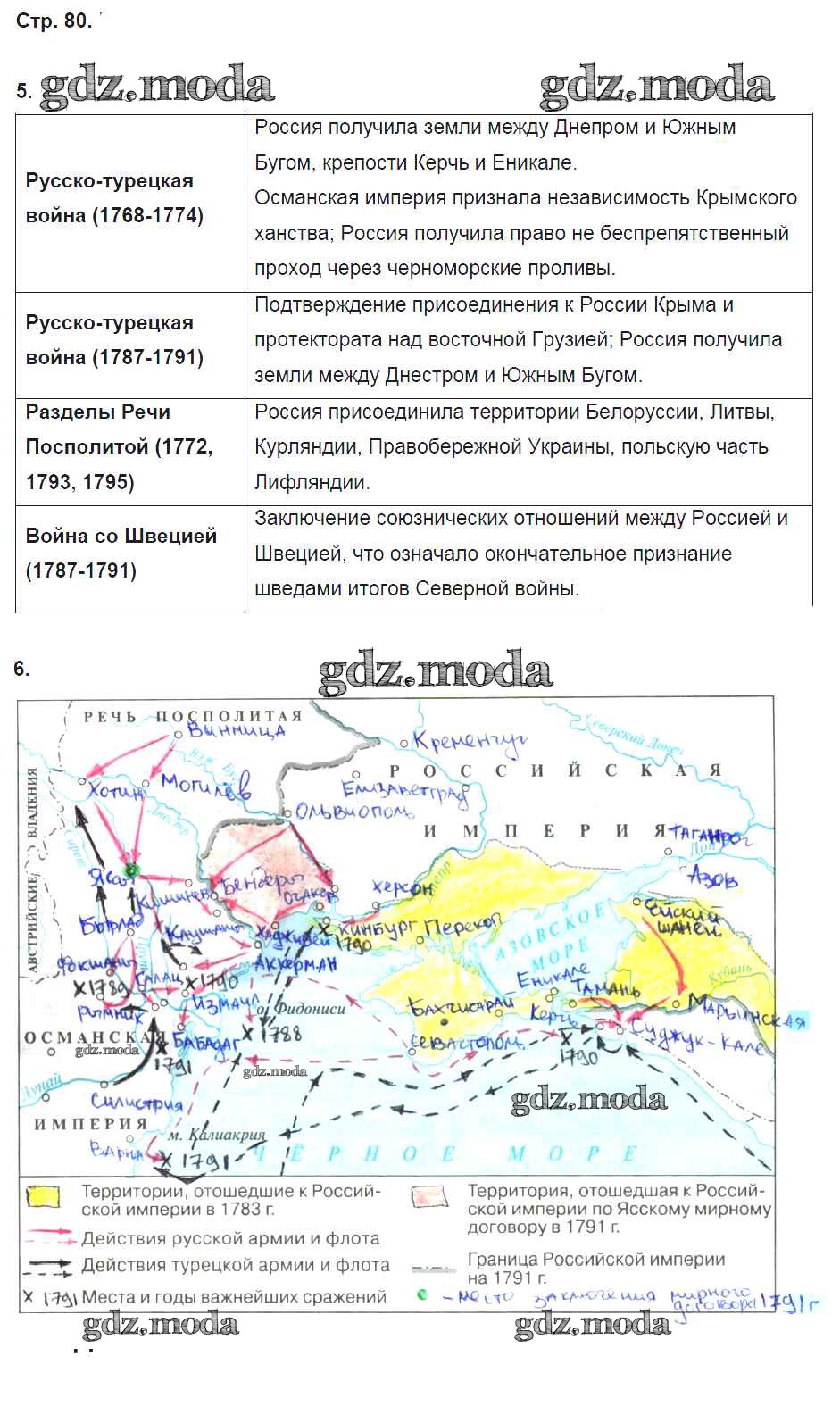 ГДЗ решение к заданию № 80 История 8 класс рабочая тетрадь Артасов И.А. Просвещение 2016 ФГОС бесплатно на гдз.мода!