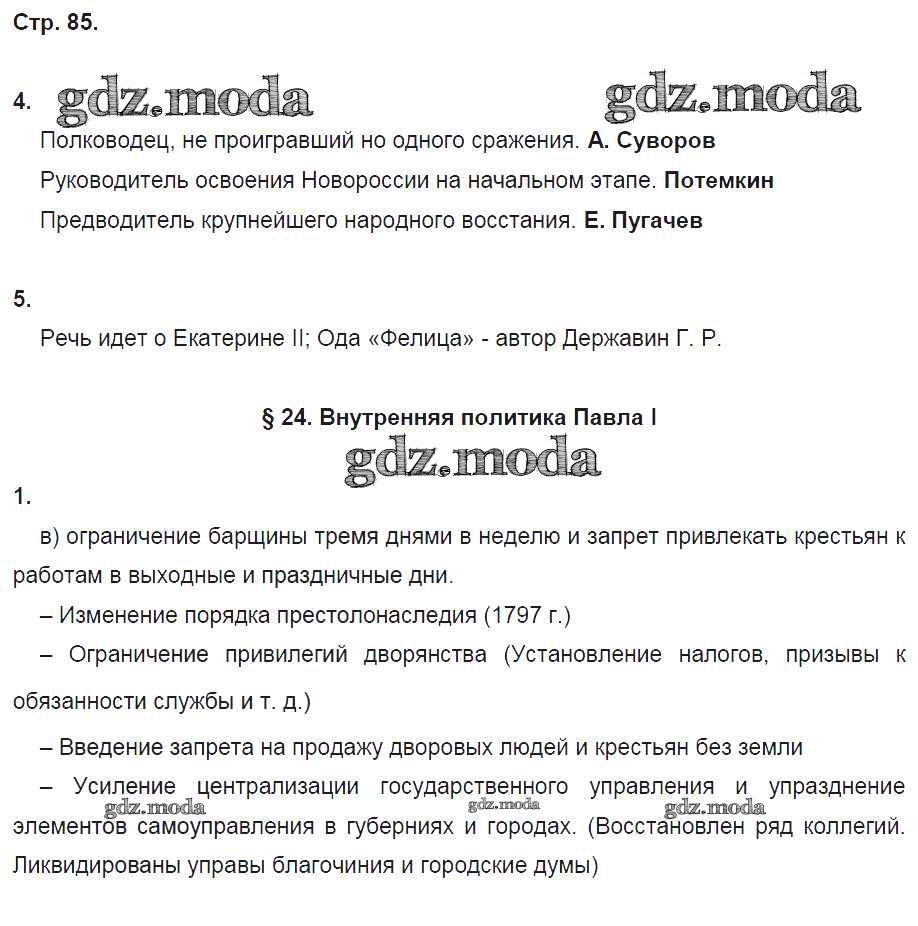 ГДЗ решение к заданию № 85 История 8 класс рабочая тетрадь Артасов И.А. Просвещение 2016 ФГОС бесплатно на гдз.мода!