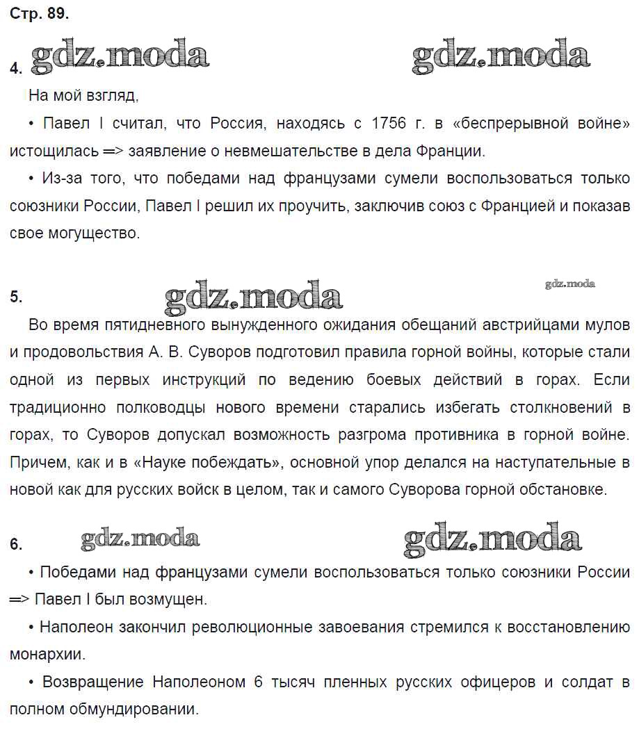ГДЗ решение к заданию № 89 История 8 класс рабочая тетрадь Артасов И.А. Просвещение 2016 ФГОС бесплатно на гдз.мода!