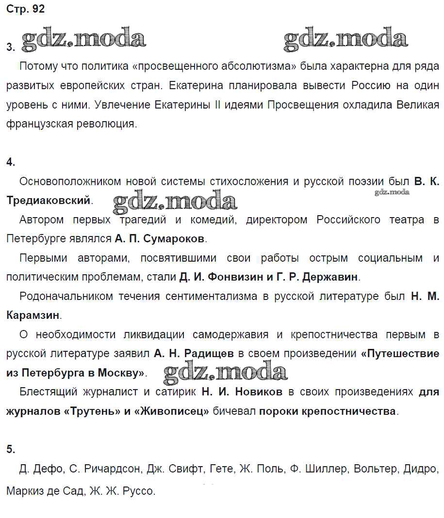 ГДЗ решение к заданию № 92 История 8 класс рабочая тетрадь Артасов И.А. Просвещение 2016 ФГОС бесплатно на гдз.мода!