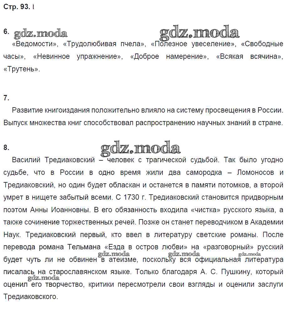 ГДЗ решение к заданию № 93 История 8 класс рабочая тетрадь Артасов И.А. Просвещение 2016 ФГОС бесплатно на гдз.мода!