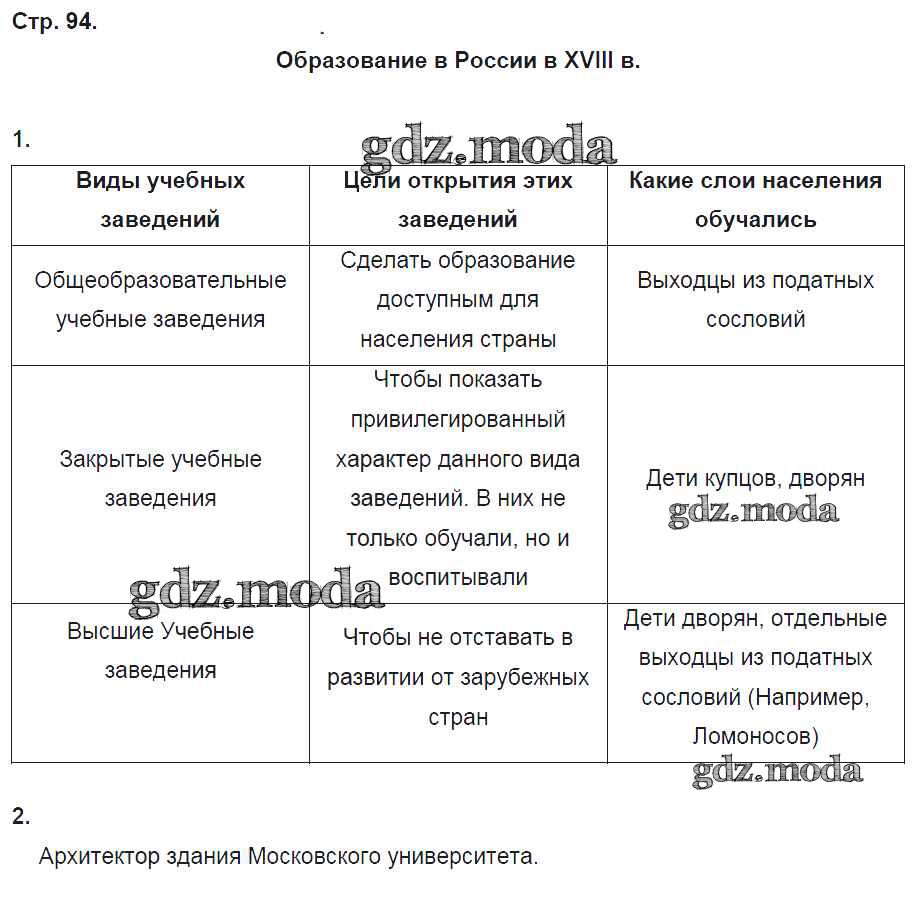 ОТВЕТ на задание № 94 Рабочая тетрадь по Истории 8 класс Артасов УМК