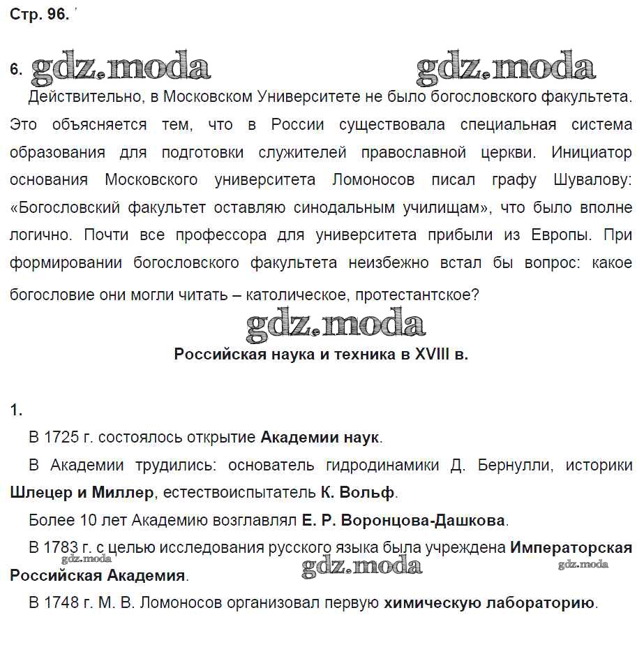 ОТВЕТ на задание № 96 Рабочая тетрадь по Истории 8 класс Артасов УМК