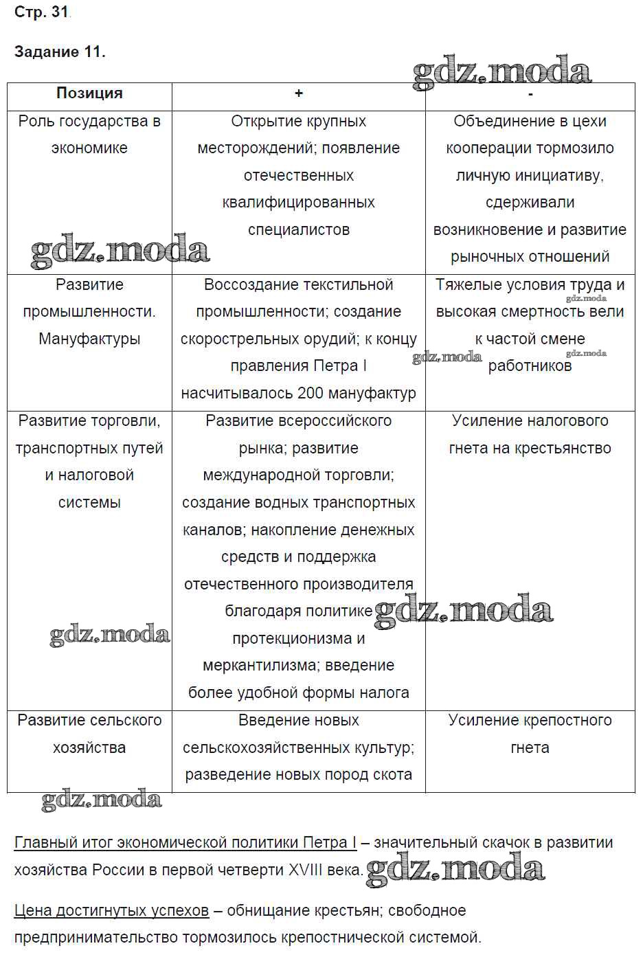 ОТВЕТ на задание № 31 Рабочая тетрадь по Истории 8 класс Чернова УМК