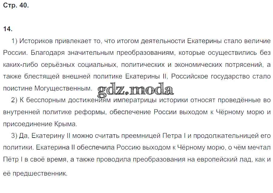 ОТВЕТ на задание № 40 Рабочая тетрадь по Истории 8 класс Чернова УМК