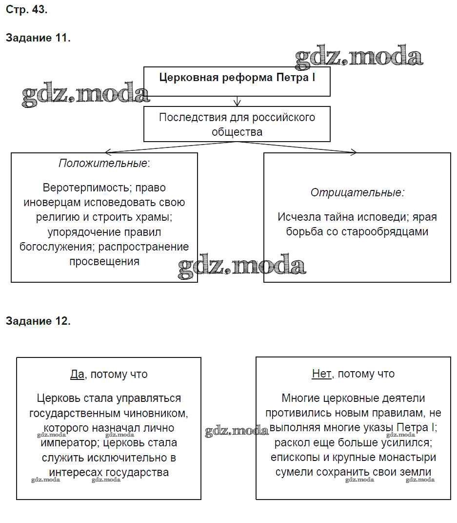 ОТВЕТ на задание № 43 Рабочая тетрадь по Истории 8 класс Чернова УМК