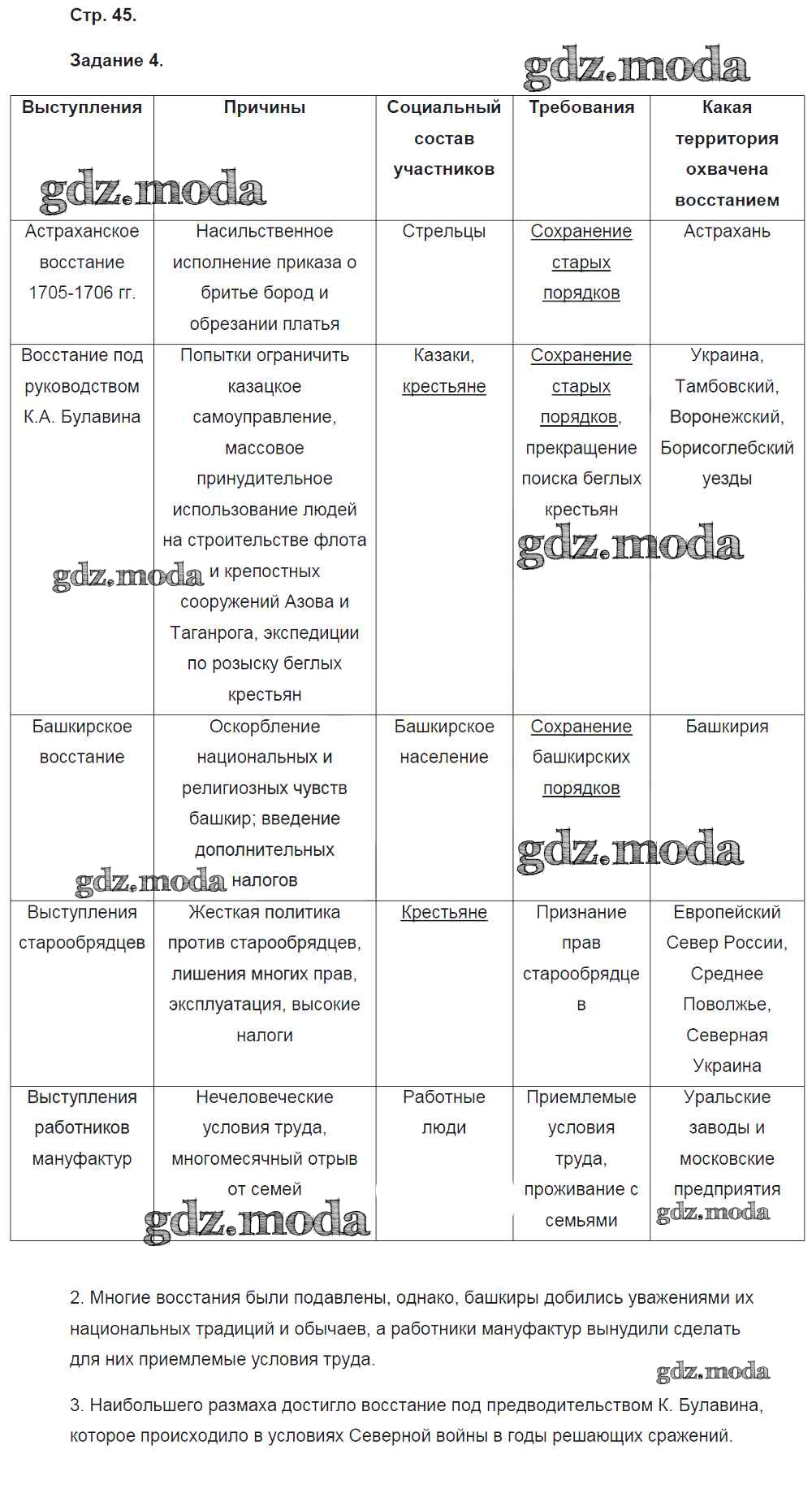 ГДЗ решение к заданию № 45 История 8 класс рабочая тетрадь Чернова М.Н. (к новому уч. Торкунова А.В.) Экзамен 2017 Часть 1, Часть 2 ФГОС бесплатно на гдз.мода!