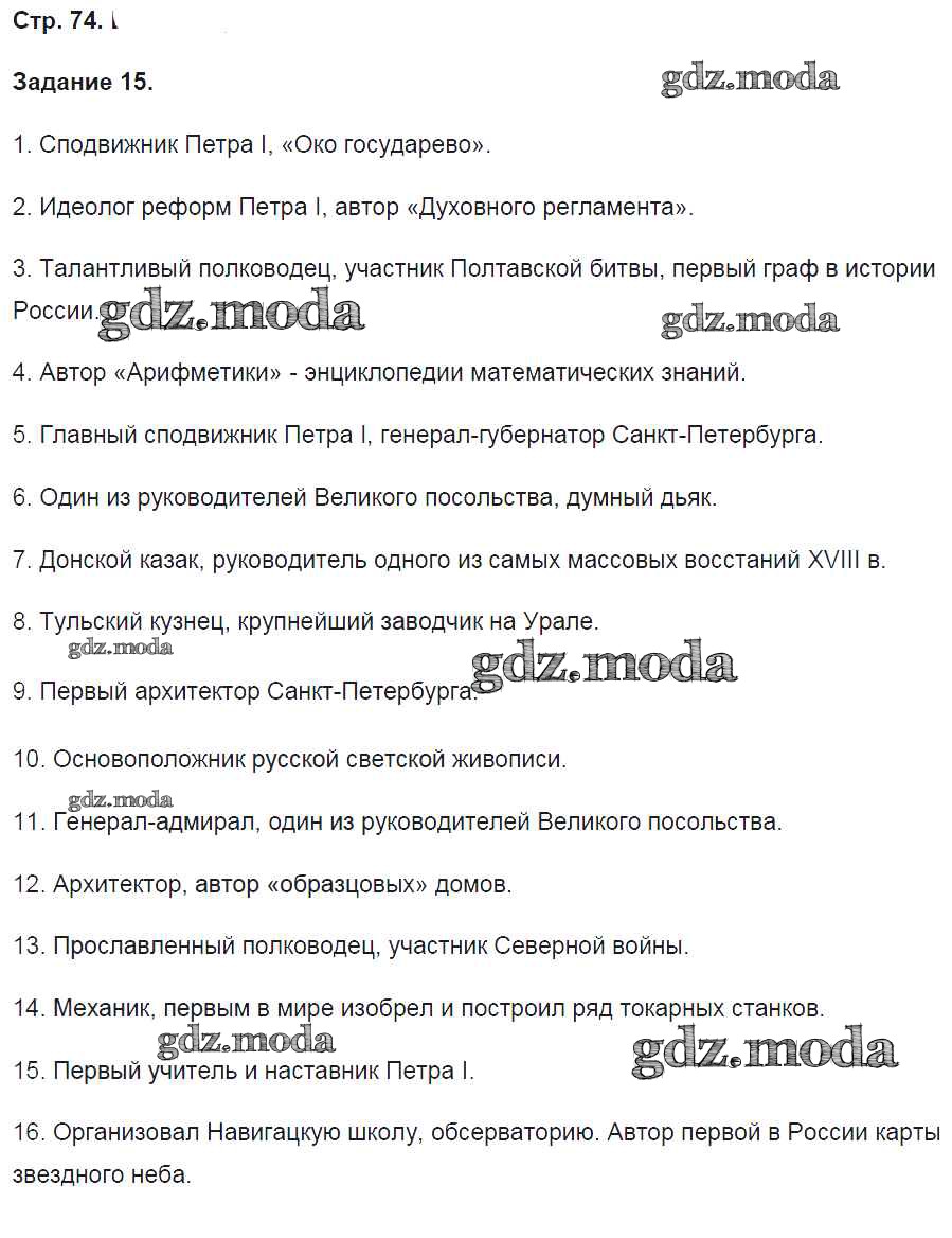 ГДЗ решение к заданию № 74 История 8 класс рабочая тетрадь Чернова М.Н. (к новому уч. Торкунова А.В.) Экзамен 2017 Часть 1, Часть 2 ФГОС бесплатно на гдз.мода!