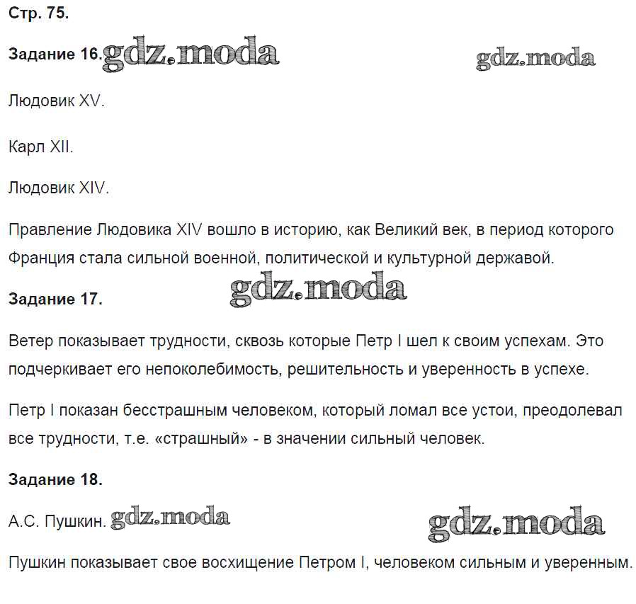 ГДЗ решение к заданию № 75 История 8 класс рабочая тетрадь Чернова М.Н. (к новому уч. Торкунова А.В.) Экзамен 2017 Часть 1, Часть 2 ФГОС бесплатно на гдз.мода!