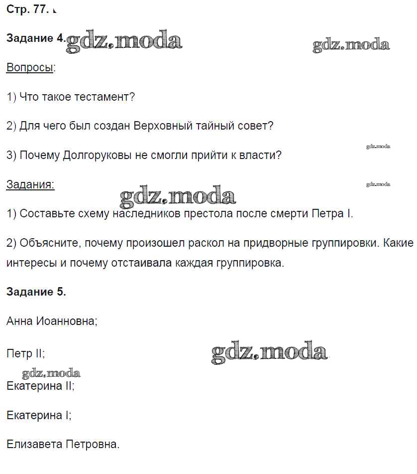 ГДЗ решение к заданию № 77 История 8 класс рабочая тетрадь Чернова М.Н. (к новому уч. Торкунова А.В.) Экзамен 2017 Часть 1, Часть 2 ФГОС бесплатно на гдз.мода!
