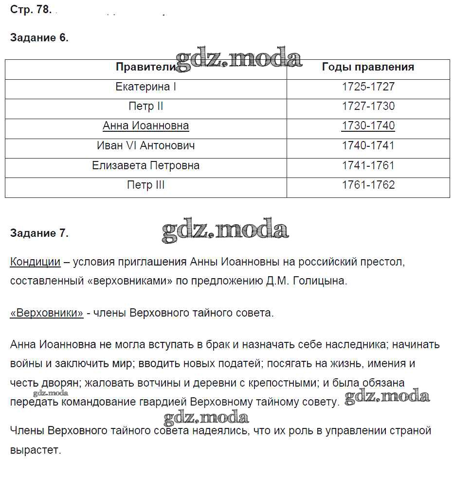 ОТВЕТ на задание № 78 Рабочая тетрадь по Истории 8 класс Чернова УМК