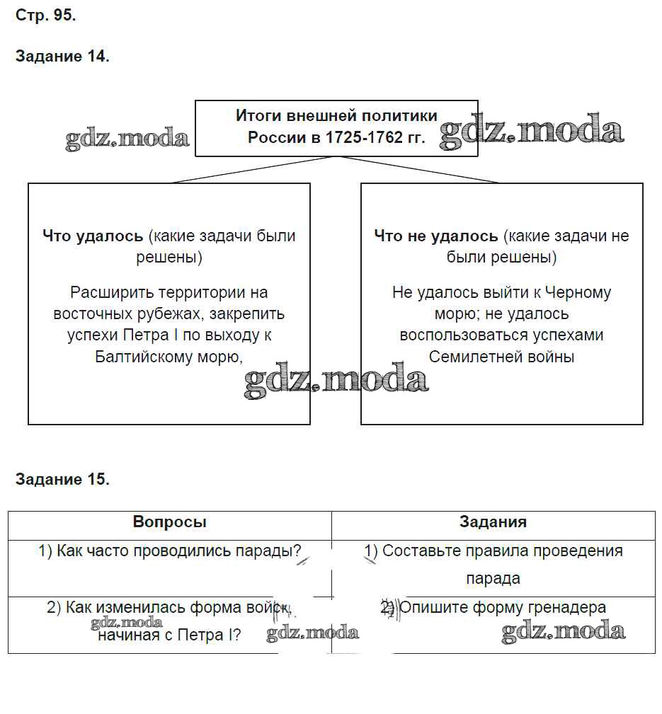 ОТВЕТ на задание № 95 Рабочая тетрадь по Истории 8 класс Чернова УМК