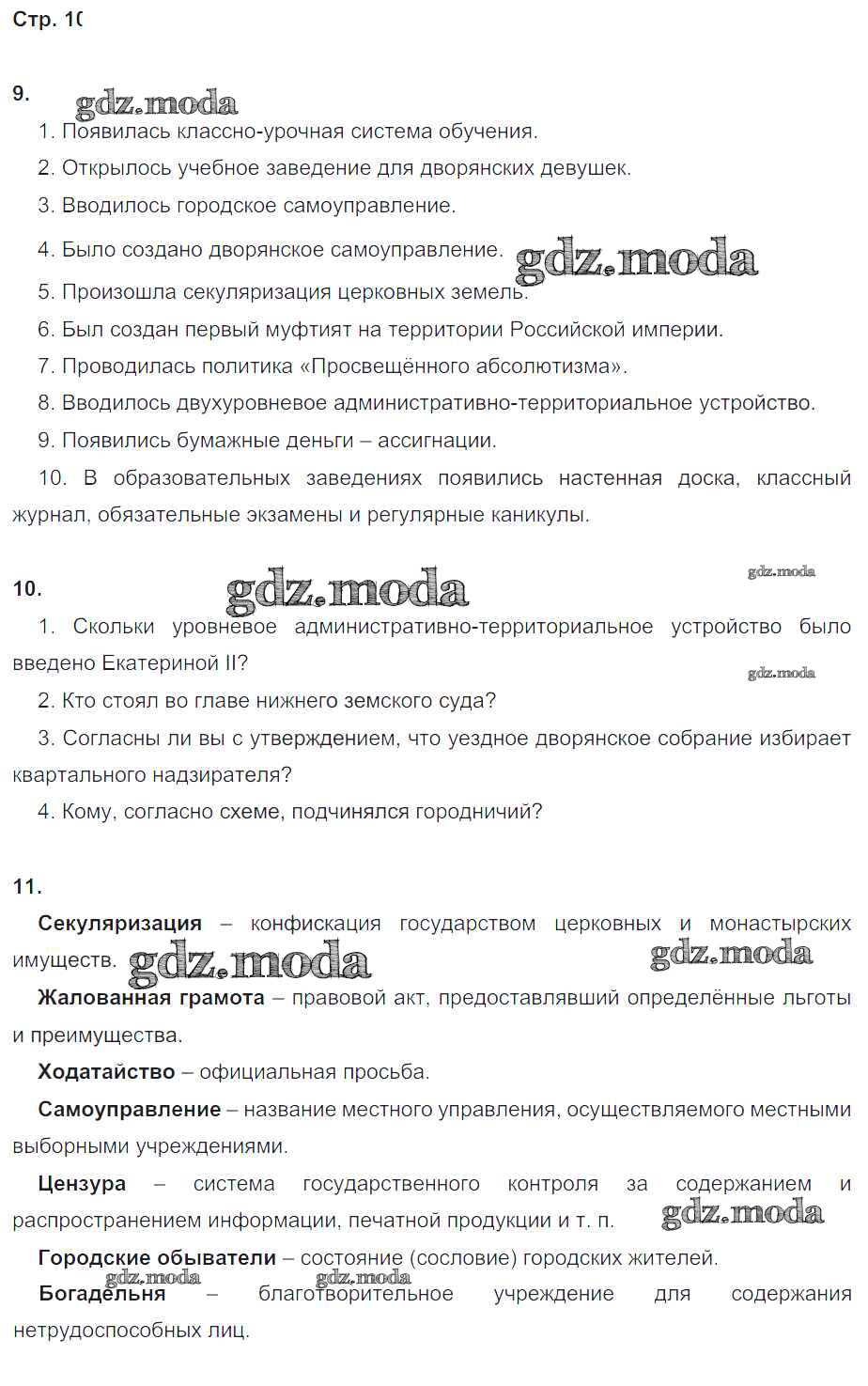 ОТВЕТ на задание № 10 Рабочая тетрадь по Истории 8 класс Чернова УМК