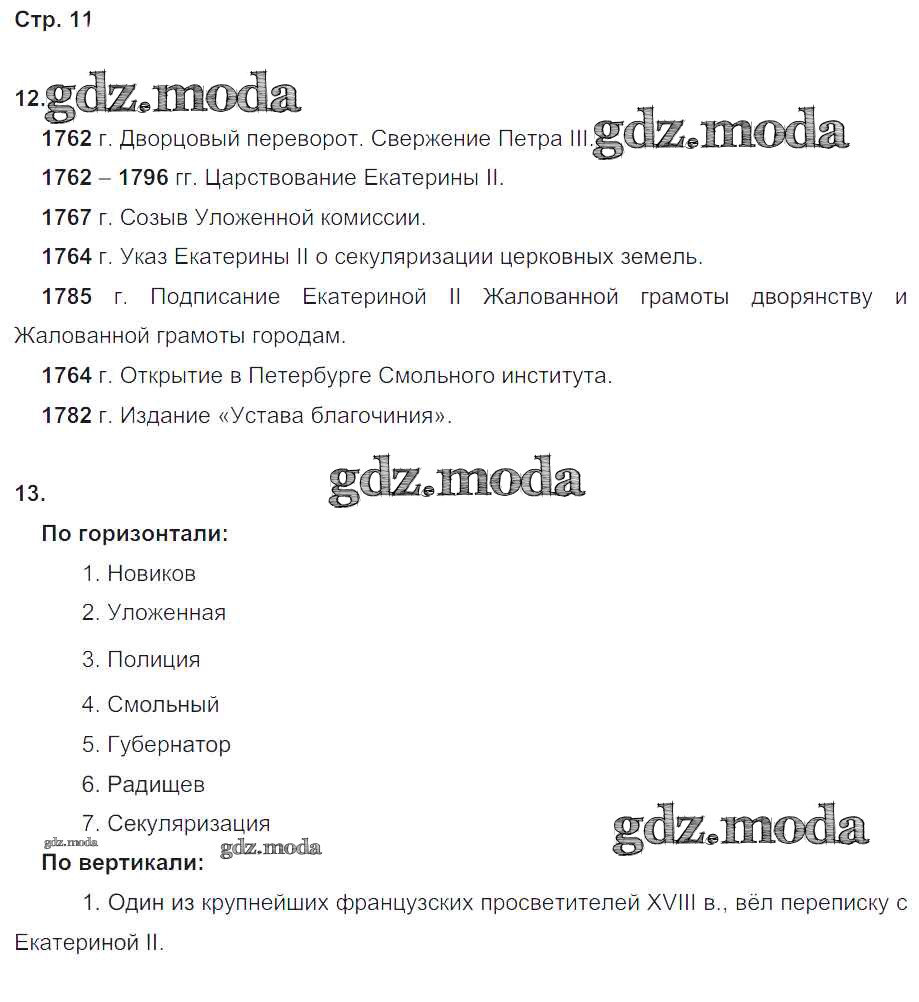 ОТВЕТ на задание № 11 Рабочая тетрадь по Истории 8 класс Чернова УМК