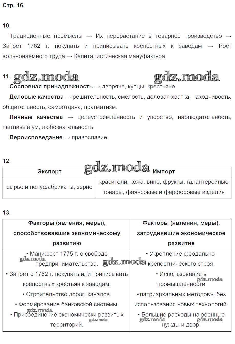 ОТВЕТ на задание № 16 Рабочая тетрадь по Истории 8 класс Чернова УМК