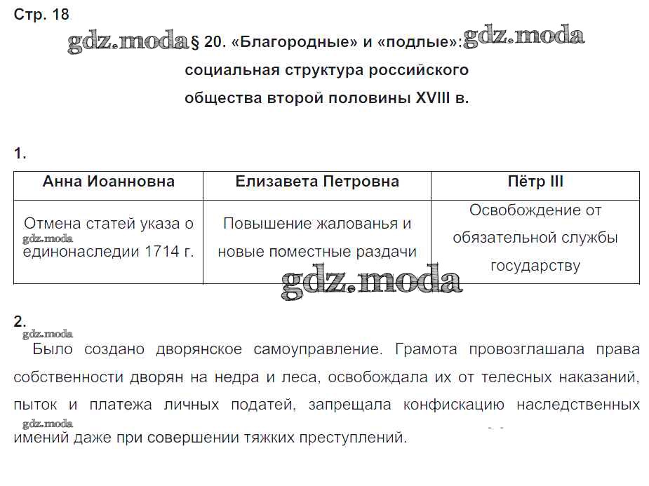 ОТВЕТ на задание № 18 Рабочая тетрадь по Истории 8 класс Чернова УМК