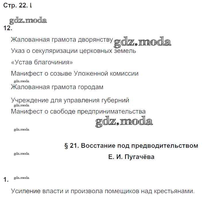 ОТВЕТ на задание № 22 Рабочая тетрадь по Истории 8 класс Чернова УМК