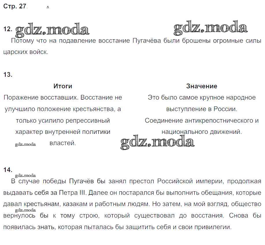 ОТВЕТ на задание № 27 Рабочая тетрадь по Истории 8 класс Чернова УМК