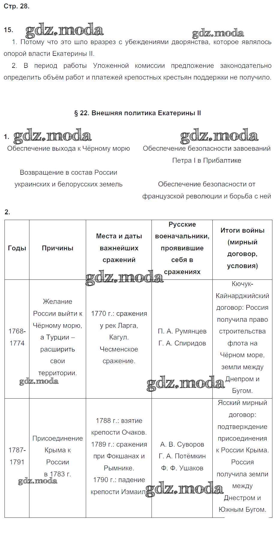 ОТВЕТ на задание № 28 Рабочая тетрадь по Истории 8 класс Чернова УМК