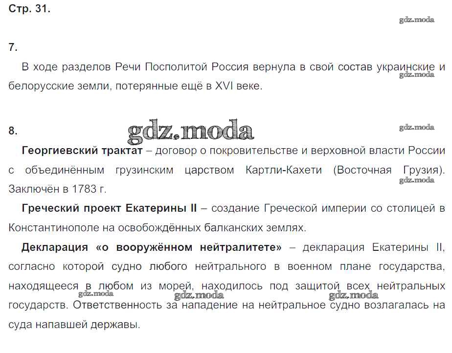 ОТВЕТ на задание № 31 Рабочая тетрадь по Истории 8 класс Чернова УМК