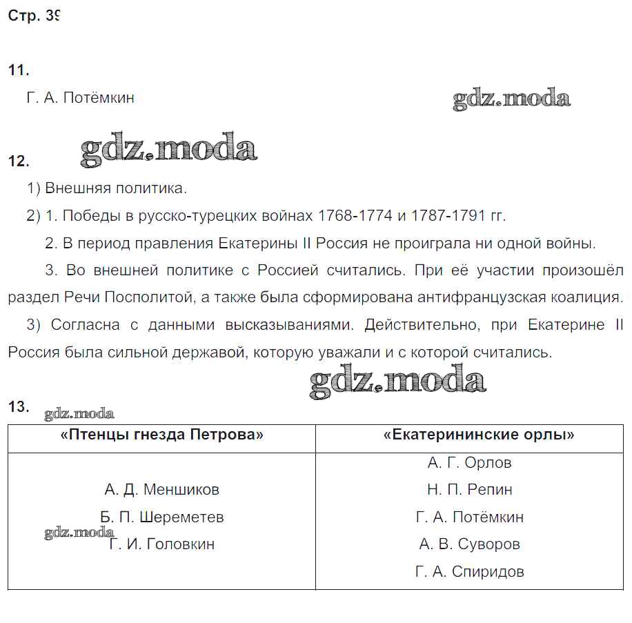 ГДЗ решение к заданию № 39 История 8 класс рабочая тетрадь Чернова М.Н. (к новому уч. Торкунова А.В.) Экзамен 2017 Часть 1, Часть 2 ФГОС бесплатно на гдз.мода!