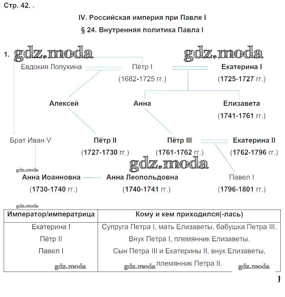ГДЗ решение к заданию № 42 История 8 класс рабочая тетрадь Чернова М.Н. (к новому уч. Торкунова А.В.) Экзамен 2017 Часть 1, Часть 2 ФГОС бесплатно на гдз.мода!