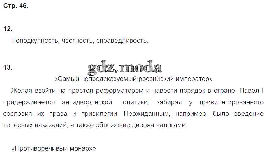 ОТВЕТ на задание № 46 Рабочая тетрадь по Истории 8 класс Чернова УМК