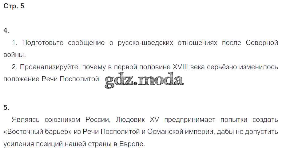ОТВЕТ на задание № 5 Рабочая тетрадь по Истории 8 класс Чернова УМК