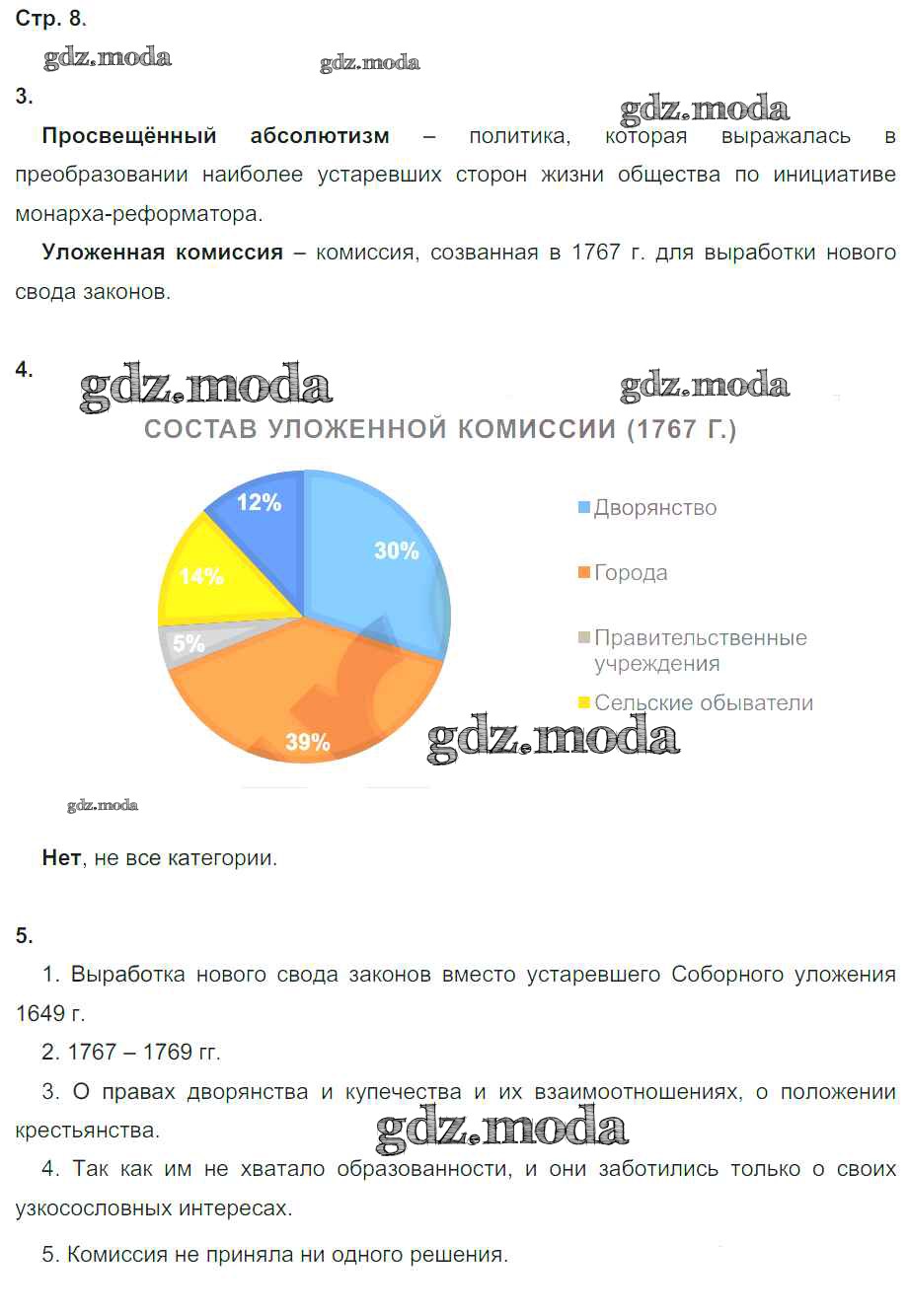 ОТВЕТ на задание № 8 Рабочая тетрадь по Истории 8 класс Чернова УМК
