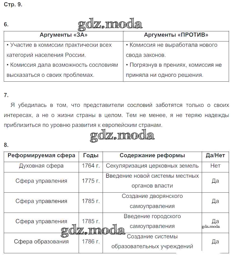 ОТВЕТ на задание № 9 Рабочая тетрадь по Истории 8 класс Чернова УМК