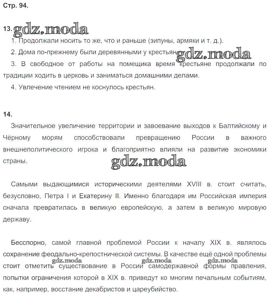 ОТВЕТ на задание № 94 Рабочая тетрадь по Истории 8 класс Чернова УМК
