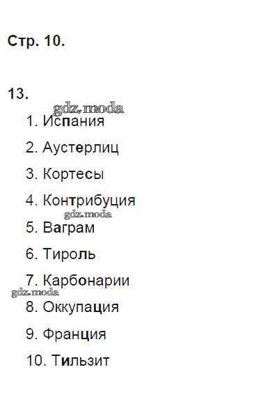 ГДЗ решение к заданию № 10 Всеобщая История 8 класс рабочая тетрадь Ермакова И.А. (к уч. Загладина Н.В.) Русское слово 2017 ФГОС бесплатно на гдз.мода!